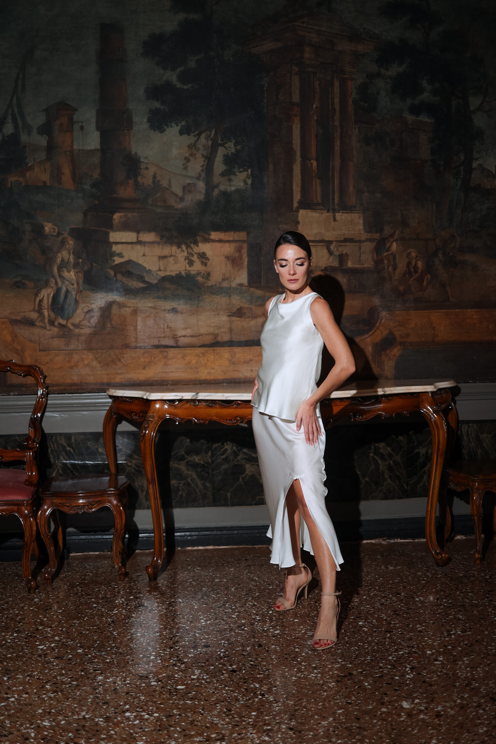 Saia de comprimento midi e modelo evasè, confeccionada em tecido 100% seda, sua modelagem destaca a linha da cintura e abre nas pontas dando fluidez. Com um toque sexy, essa peça super elegante e coringa, tem uma fenda na lateral esquerda, que finaliza com um botão chinês no topo.